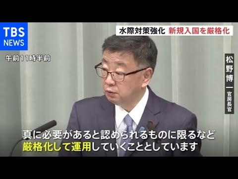 松野官房長官は、日本人や永住者の配偶者と子ども、人道的な配慮が必要な場合など、例外的に新規入国を認めてきた事例について、オミクロン株対策として厳格化する方針を示しました。既に、国費留学生や語学指導者プログラムなどの新規入国は停止したとしています。