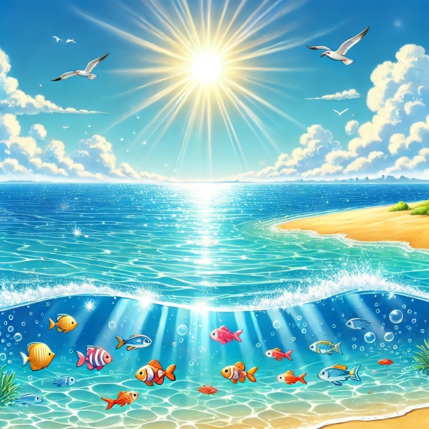 海のはじまりは、地球誕生から始まり、地殻変動や気候変動などの影響で形成された。最初は陸地に雨水がたまり、河川や湖ができ、やがて海となった。海は生命の源であり、多くの生物が生息し、人類にとっても重要な資源の一つである。海は豊かな生態系を持ち、地球上の気候や環境にも大きな影響を与えている。