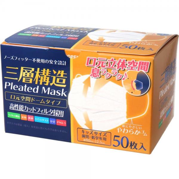 発売日2025-05-30 13:03:50メーカーその他のメーカー 品番storegka003883q4qsedro8JANコード4589596692746価格¥1298 〇商品説明上下のプリーツが作る口元立体空間!四つ折りプリーツがドーム状に広がることで、口元に空間をつくり不快な息苦しさを解消します。●三層構造。不織布の三層構造フィルタで、ウイルス飛沫・花粉・ホコリのミクロ粒子をシャットアウト!●やわらかゴム。長時間の使用でも耳が痛くなりにくいゴムを採用。●カットフィルタ採用。花粉花粉粒子捕集効率PFE微小粒子捕集効率BFEバクテリア飛まつ捕集効率VFEウイルス飛まつ捕集効率※マスクは感染(侵入)を完全に防ぐものではありません。※安全性を考慮して鼻の部分にノーズフィッターは入っておりません。【品名】マスク【素材】本体・フィルター部ポリプロピレン耳ひも部ポリウレタン・ポリエステル【サイズ】キッズサイズ(園児・低学年用)約90mm×125mm【使用方法】(1)プリーツを上下に広げてください。※張り出した側が外側です。(2)アゴまですっぽり覆うようにプリーツの位置を調整してください。【使用上の注意】・乳児や呼吸器に異常がある方は使用しないでください。・本品は有毒ガス、有害粉塵に対して効果はありません。・万一、かゆみ・かぶれ等の症状があらわれた場合は、直ちに使用を中止してください。・本品は使い切りの製品です。洗濯などによる再使用はできません。ご使用は一日一枚を目安とし、汚れが気になる場合はお取替えください。・万一、臭いにより気分が悪くなった場合は、直ちに使用を中止してください。・乳幼児の手の届かない所に保管してください。・高温多湿な場所での保管は避けてください。・息苦しさを感じたら使用を中止してください。・臭いの強い製品の近くで保管をしないでください。〇商品仕様個装サイズ140X87X100mm個装重量約152g内容量50枚入製造国中国【発売元株式会社iiもの本舗】(出典iiもの本舗 (イイモノホンポ)) DMMで見る Related posts:セーフタッチ ニトリル手袋 パウダーフリー Mサイズ 100枚入白十字 モイスキンパッド2630 滅菌済 15袋入THE MASK 3D立体不織布マスク ブラック レギュラーサイズ 30枚入 投稿ナビゲーション 三層構造 口元空間ドーム型マスク 小さめサイズ 50枚入 三層構造 プリーツマスク 口元空間ドームタイプ 個別包装 大人用 30枚入