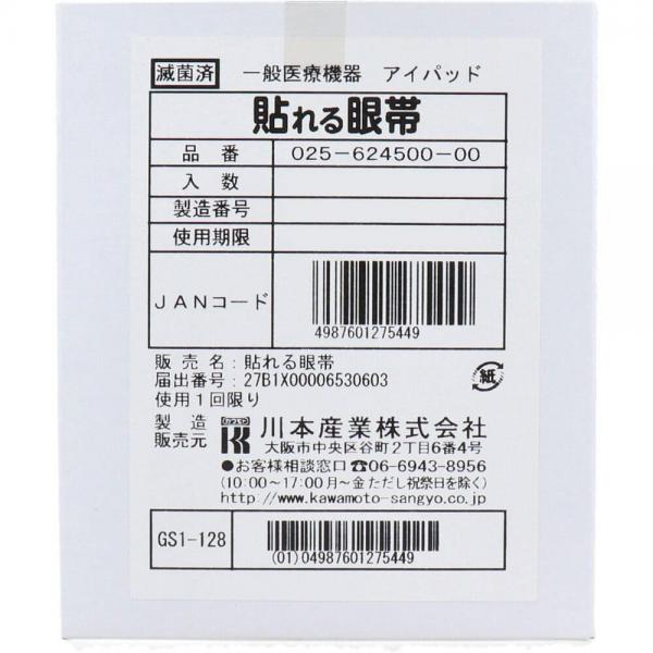 発売日2025-05-30 13:06:57メーカー川本産業 品番storegka00388xp7dyywc9sJANコード4987601275449価格¥4198 〇商品説明貼るだけで簡単に装着できる眼帯です。・上部には粘着剤を使用していないので眉毛にくっつきません。・耳ひもがないので、メガネを着用の方にも便利です。・吸液パッド付で涙や目ヤニをしっかり吸液します。・1枚ずつ個別包装し、滅菌していますので、衛生的です。・左右兼用です。【一般医療機器】医療機器届出番号27B1X00006530603 【使用目的・効能効果】・目の保護または、分泌物の吸収に用いることを目的としたパッドです。【ご使用方法】目のまわりを清潔にし、パッド部分が目を覆うように当て、貼って下さい。(1)貼れる眼帯を袋からとり出す。(2)裏面の剥離紙をはずす。(3)しわにならないように注意して貼る。(粘着剤がついていない方を上(眉毛側)にする。)【材質】不織布…ポリエステル、レーヨン、ポリプロピレンネット部…ポリエチレン粘着剤…アクリル系剥離紙…紙【してはいけないこと】・再使用しないで下さい。【使用上の注意】・開封後は直ちに使用して下さい。・粘着テープ部分を傷や湿しん、かぶれ等の患部に貼らないでください。・発疹、発赤、かゆみ等の症状があらわれた場合は、使用を中止し、医師または薬剤師、登録販売者に相談して下さい。・滅菌袋が開封、破損している場合は使用しないで下さい。・皮ふ刺激の発生原因になりますので、長時間貼り付けたり、急激に剥がしたりしないでください。・斜視、弱視訓練用ではありません。・本品使用中の歩行や階段の昇り降りには注意してください。また、自転車等の運転はお避けください。・使用後は感染防止に留意し破棄してください。・直射日光、水濡れ、火気及び高温多湿を避け、清潔な場所に保管してください。・小児の手の届かないところに保管してください。〇商品仕様個装サイズ105X127X90個装重量約130g内容量50枚入製造国日本【発売元川本産業株式会社】(出典川本産業) DMMで見る Related posts:使い捨て不織布 三層サージカルマスク お徳用タイプ 大人用 50枚入BMC 不織布マスク プレミアム 1日使いきりタイプ 小さめサイズ 60枚入BMC やわふわリッチマスク 1日使いきりタイプ 個別包装タイプ 小さめサイズ 80枚入 投稿ナビゲーション プロケア ニトリルグローブ ブルー Sサイズ 100枚入 やわらか高弾力手袋 ビニール素材 ノンパウダー Mサイズ 100枚入