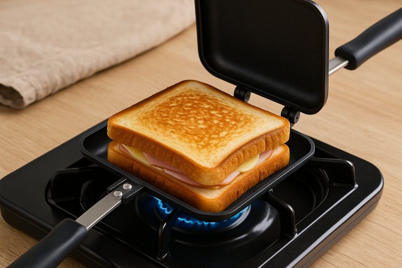 使用者の多くが、パンの焼き色がとても均一でおいしそうに仕上がると感じています。ガス火専用の設計による優れた熱伝導性が、パン全体をムラなく加熱してくれます。見た目も味もワンランク上のホットサンドが楽しめるのは、大きな魅力です。